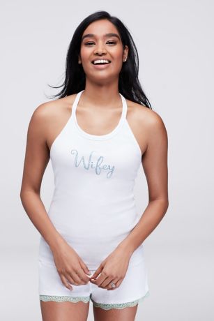 Catch the sweetest newlywed zzzz's in this rib-knit tank and shorts set, featuring a sparkly Wifey embellishment.