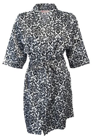 Wrap yourself in elegance with this classic black and white damask satin robe.