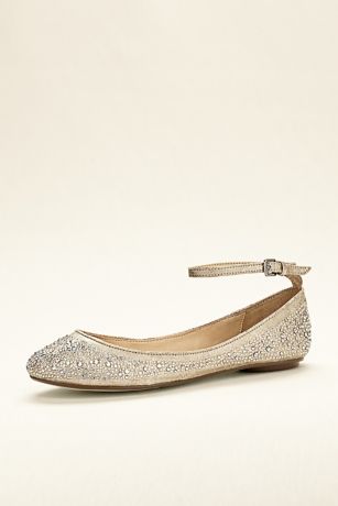- Ballet flat features ankle strap for a secure fit and is embellished with all-over high shine crystals.
