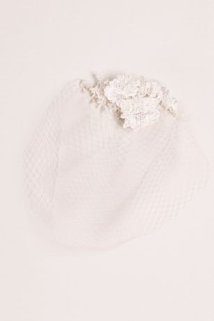 This vintage-inspired Russian tulle blusher veil stands out with pearl-beaded floral lace details.