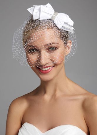 You're bound to look beautiful in this stunning blusher veil, featuring a satin bow with scattered crystals and beadwork!