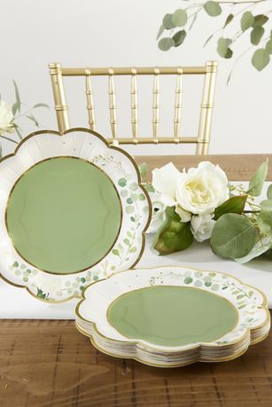 A lovely set of scalloped botanical paper dessert plates for your wedding reception, bridal shower, or other special event.