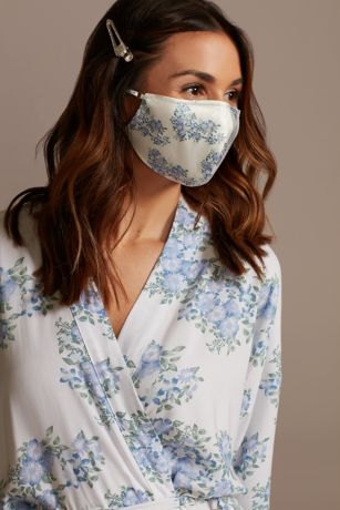 Delicate floral clusters add a vintage vibe to this satin face mask, while adjustable ear loops provide a secure fit.