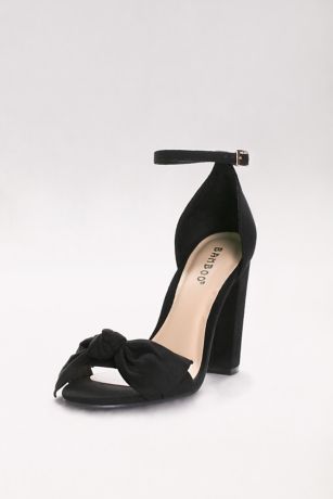 Bow-Front Faux-Suede Block Heel Sandals