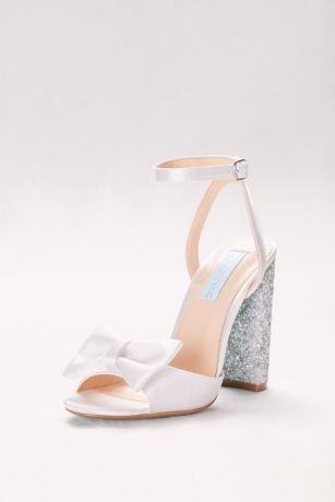 These pretty satin high-heel sandals combine a feminine bow detail with a fun, glitter-topped chunky heel.