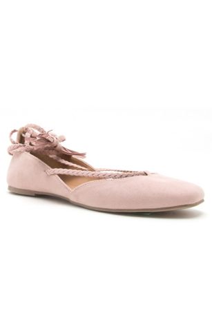 A bit romantic, a bit boho, these faux-suede flats knot at the ankle with braided tassel ties and pair perfectly flowy skirts and cropped jeans.