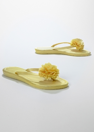 - Comfortable flip flop features flower on the front and matches back to many bridal dresses.