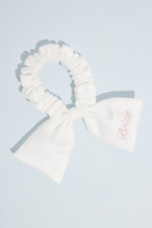 Wrap up your bachelorette party or spa look with this playful scrunchie, featuring an embroidered bow.