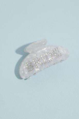 Perfect for bachelorette party looks, this pearlescent claw clip features rhinestone lettering for bridely babes.