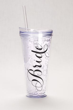 A useful gift for a newly engaged bride-to-be, this lacy bride tumbler comes with a lid and straw and is perfect for enjoying hot and cold drinks.