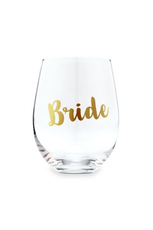 Get wedding day ready with this beautiful stemless toasting wine glass gift, featuring "Bride" personalization in glimmering gold calligraphy. This is a unique, custom favor idea for your best friends when they get engaged, and can be used as cool drinkware at their wedding reception. Because it is an inexpensive gift to buy in multiples or as add-ons, especially on a cheap budget, pair it with other available printed stemless wine glassware cups to complete the fancy drinking set for the bridal party! Custom toasting glasses are also a fun, his and her bridal shower gift or cute engagement present for the future Mr. and Mrs. This modern bridal party wine drinking glass set is an elegant gift any bride and groom, bridesmaid, groomsmen, or maid of honor will cherish for years to come!
