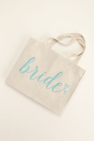 Perfect for carrying all wedding day essentials, this Bride Tote Bag is a great gift for the bride-to-be in your life! Features Bride and heart design in blue ink.