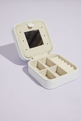 This personalized "bride" jewelry box is the perfect gift for her big day and beyond. Upon unzipping the luxe vegan leather case, find comfort in storing precious belongings within the soft velvet interior, and use the compact mirror to make touch-ups breeze.
