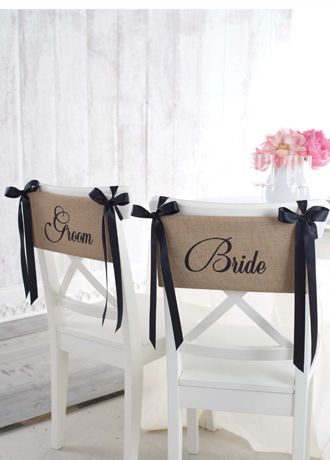 Decorate your venue with these adorable printed burlap chair sashes. Perfect for a touch of rustic elegance!