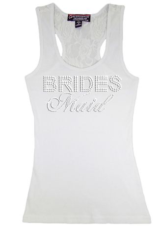 Make your girls feel special in this trendy rhinestone lace race back tank top. Soft and blinged out with rhinestones, this tank is available in an array of great colors and several bridal party titles. Great for a bachelorette party!