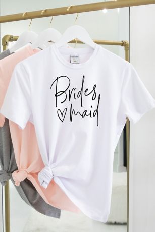 Adorned with the word "bridesmaid" in white script, your bridal party will look as pretty as can be in this fitted tee. Size up if you prefer a relaxed fit.