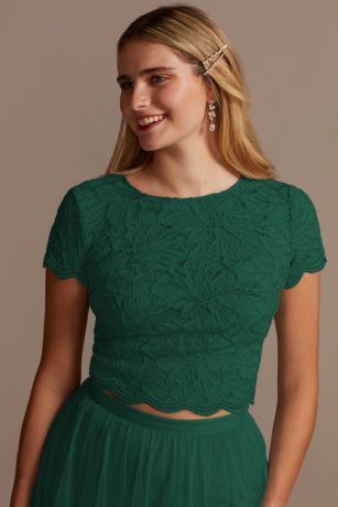 Create a custom bridesmaid look with this short sleeve top, made of stretch lace and designed to be paired with our other bridesmaid separates. It's versatile enough to wear after the big day, too!