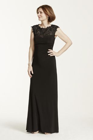 Cap Sleeve Jersey Dress with Lace Illusion Bodice