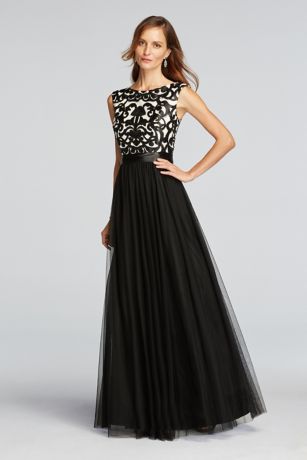 - Voluminous, floor-length mesh skirt takes this dress to the next level.