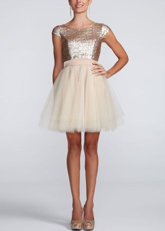 Cap Sleeve Sequin Bodice Dress with Tulle Skirt