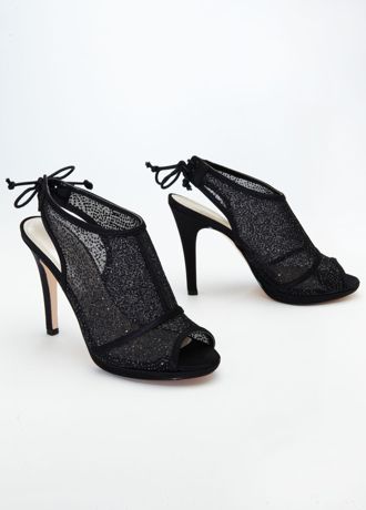 Step out in these stylish mesh glitter covered peep toe shootie's with corset tie back.