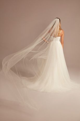 Add subtle shimmer to your wedding day look with this vintage-inspired cathedral-length tulle veil.