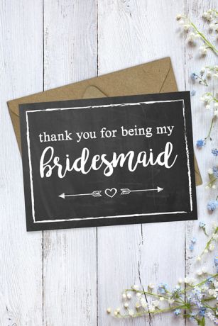Pair your bridesmaid's gift with this chalkboard-style maid of honor thank-you card.