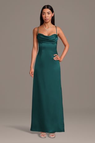 Charmeuse Cowl Neck Spaghetti Strap Sheath Dress