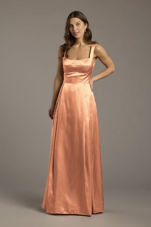 This charmeuse A-line dress features bra-friendly tank straps with a scoop neckline. The lustrous fabric adds a touch of luxury, making it perfect for an elegant and refined look for both bridesmaids and partygoers.Inner Beauty: Side pockets come in handy for tissues and makeup touch-ups!