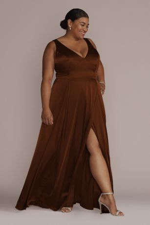 This stunning charmeuse tank V-neck bridesmaid dress from David's Bridal is the perfect choice for any bridal party. The sleek and elegant design features a flattering V-neckline, triangle waist, and a subtle slit that adds a touch of sophistication. The charmeuse fabric drapes beautifully, creating a luxurious look that is sure to turn heads. Whether you're a bridesmaid or a guest at a wedding, this dress is a versatile option that can be dressed up or down depending on the occasion.