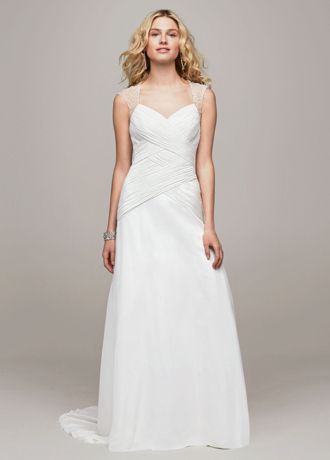 This striking chiffon A-line gown is both beautiful and timeless!
