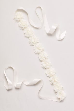 There's nothing sweeter than this flower sash's dainty chiffon blooms tied with a delicate bow to decorate your flower girl's waist.