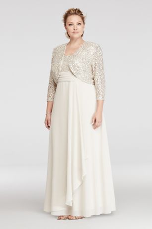 Chiffon Dress with Sequin Lace Jacket and Bodice