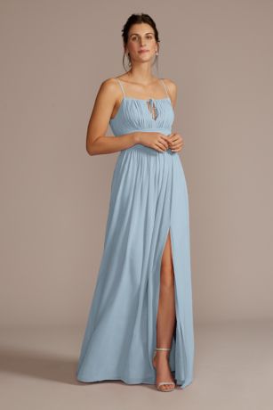 The gathered bodice and ruched waist give this chiffon bridesmaid dress all the boho vibes.