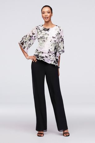 Chiffon Pantsuit with Asymmetric Tiered Hem