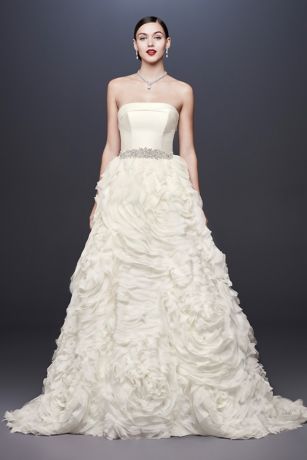 Chiffon Rosette Strapless Ball Gown Wedding Dress
