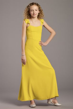 Light and airy, this chiffon A-line dress features delicate ruffle straps for a sweet look that's perfect for junior bridesmaids.