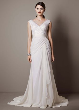 Step back in time with this gorgeous chiffon sheath wedding gown reminiscent of Old Hollywood glamour!