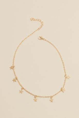 This charming choker has dangling accents spaced across a delicate necklace chain in your choice of bezel set crystals, hearts, or metal stars. Perfect for layering!