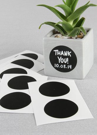 Customize your wedding with these fun circle shaped chalkboard stickers. Use them to label favors, glassware, gifts, and more! They are easily removable from most surfaces and can be wiped clean for reuse.