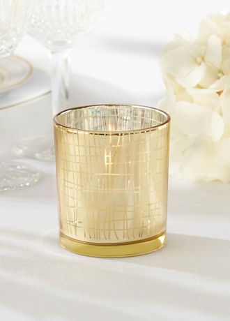 Classic Gold Stripe Tealight Holders are perfect for decorating reception tables or giving to guests as an elegant wedding candle favor.