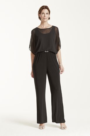 Cold Shoulder Chiffon and Jersey Jumpsuit