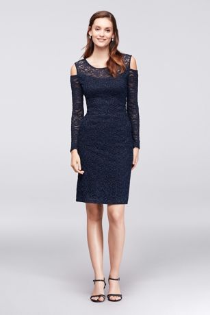 This long-sleeved illusion lace cocktail dress is a perfect combination of classic and modern, thanks to its on-trend cold-shoulder detailing.