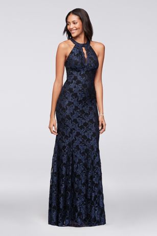 Contrast Glitter Lace Mermaid Gown