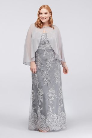 Corded Lace Plus Size Sheath and Chiffon Capelet