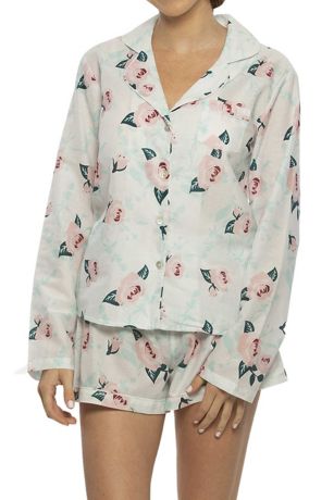 These adorable Bridesmaid Floral Pajamas include a long sleeve button down shirt and a comfy stretch waistband short. The PJ's are made of a breathable cotton. PJ Set ships in a gift pouch.