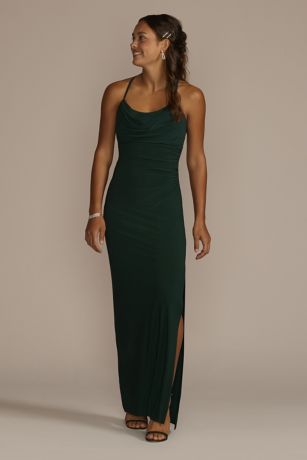 Two words define this long sheath dress: subtly sexy. Not only will you be comfortable mixing and mingling all night long thanks to stretch jersey fabric, but you'll look great doing it. The cowl neckline highlights your lovely decolletage ooh la la!