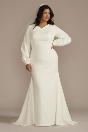 Crepe Billow Sleeve Modest Mermaid Wedding Dress