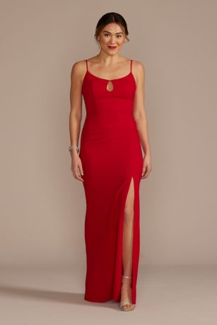 Perfect for a special occasion or a night out, this dress is sure to make you feel confident and beautiful. The crepe fabric is both elegant and comfortable, allowing you to move and dance with ease. The keyhole detail adds a touch of allure, while the side slit adds a hint of drama. Pair it with your favorite heels and statement jewelry for a stunning look that will make you the center of attention. Whether you're attending a wedding, a cocktail party, or a formal event, this occasion wear is a stylish choice that will make you stand out from the crowd.