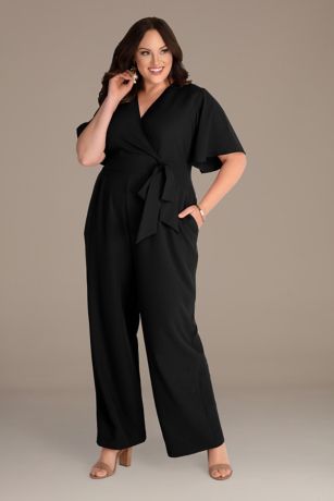 You can never go wrong with a jumpsuit! The tie waist and flutter sleeves on this plus-size crepe jumpsuit add personality and a hint of sexy.